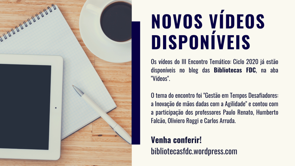 Para ter acesso aos vídeos dos encontros temáticos, pesquise o termo “encontro temático” no nosso catálogo no Pergamum ou na aba “Vídeos” deste blog.